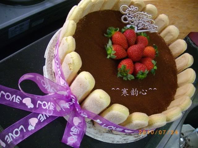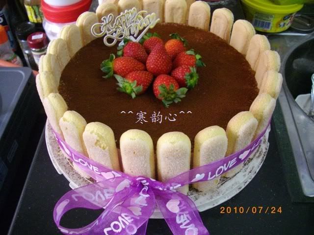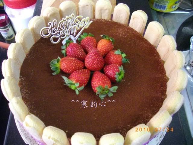 我用的食谱是Kittymiao的,不过我个人觉得这食谱蛋糕太甜,鲜奶油太多,掩盖了芝士味,酒味也不够,所以我在份量上作了更改~因为懒惰,所以我也不做咖啡海绵蛋糕底,直接用手指饼~
