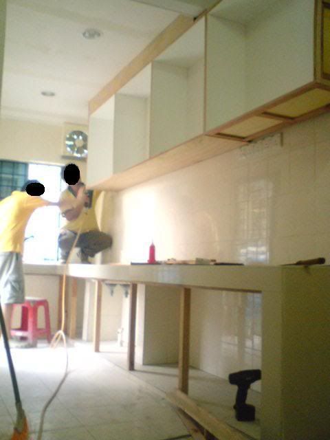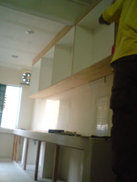 其实粘好formica才吊上去比较好,比较省人工。