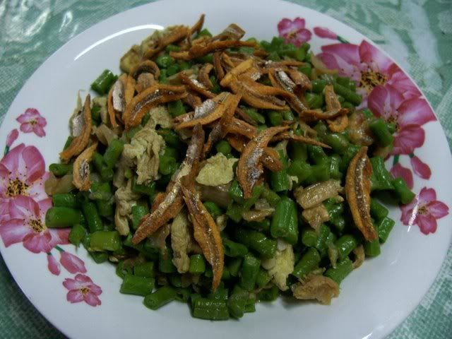 懒惰煎江鱼仔没关系啦,可以放点虾米爆香才炒长豆,也很惹味哦!