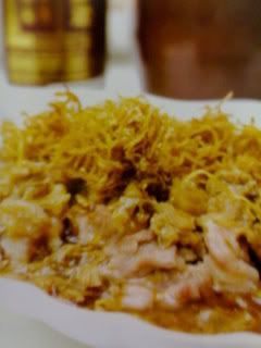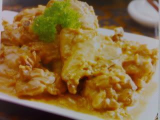 3)烧热麻油爆香姜丝然后捞起沥干油份备用 .