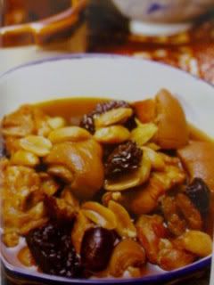 材料:猪脚300克 ,红枣25克 ,黑枣25克 ,花生米(去皮)40克