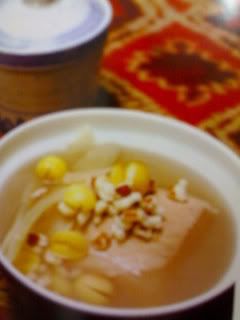 做法:1)将淮山 ,芡实和水先煮滚后改用慢火煮20分钟 .