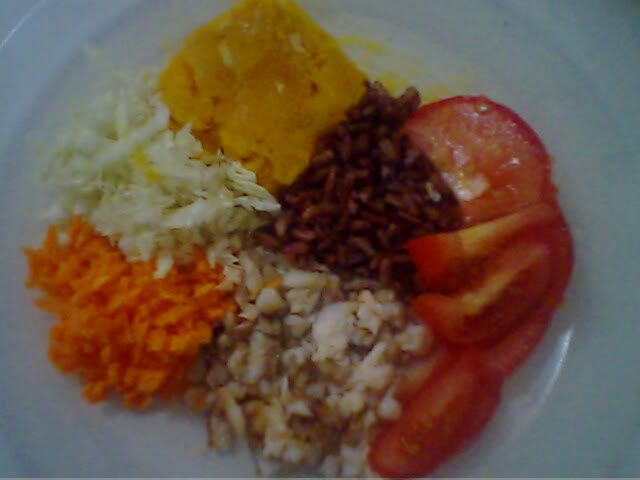 南瓜+包菜+萝卜+鱼+brown rice+tomato