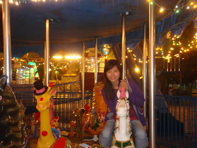 在旋轉木馬上的雯。這個旋轉木馬轉超快...大概三四秒就轉一圈了!!這是我看過最快的旋轉木馬!!!