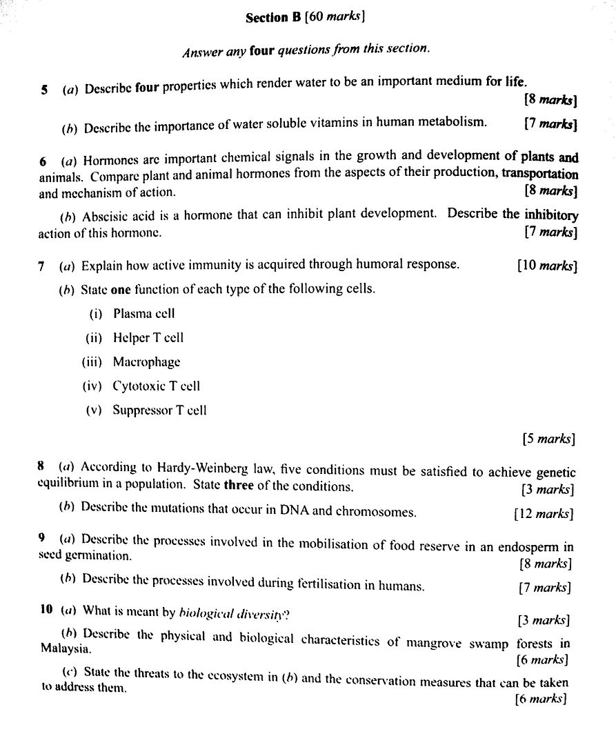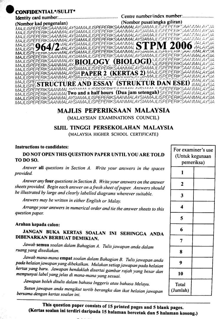 Hey, 2006年的STPM Bio试卷 paper 2来咯!