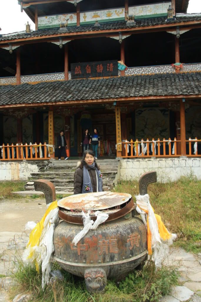 在五彩池可以看到一间美丽的寺庙,叫黄龙后寺。