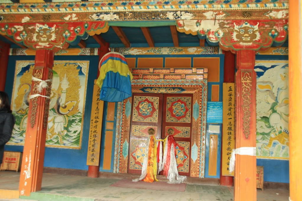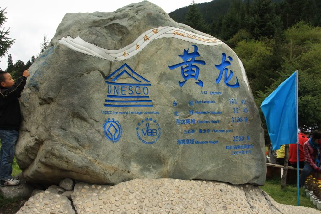 黄龙后寺门上绘有彩色的巨龙,楣上有一匾,从正面观看是“黄龙古寺”,左面观看是“飞阁流丹”,右面观看是“山空水碧”。在黄龙寺还有一幅著名的楹联:玉璋参天,一径苍松迎白雪;金沙铺地,千层碧水走黄龙。这副楹联出自几百年前一位佚名学士之手,寥寥几笔,简洁明快,勾画出了黄龙苍茫空灵,磅礴大气的景色。