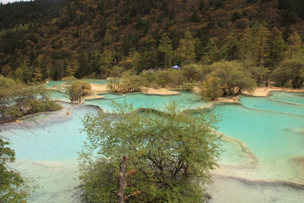 黄龙美景处处,五彩池外,还有黄龙洞,玉翠彩池,金沙铺地,盆景池,金瀑泻银等,不过因为导游给的时间不多 ...