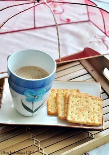 今天准备晚餐同时 肚子实在饿到不行 随随便便先挨几个饼干milo算了 等煮好后在好好吃餐丰富的