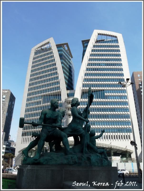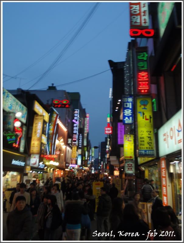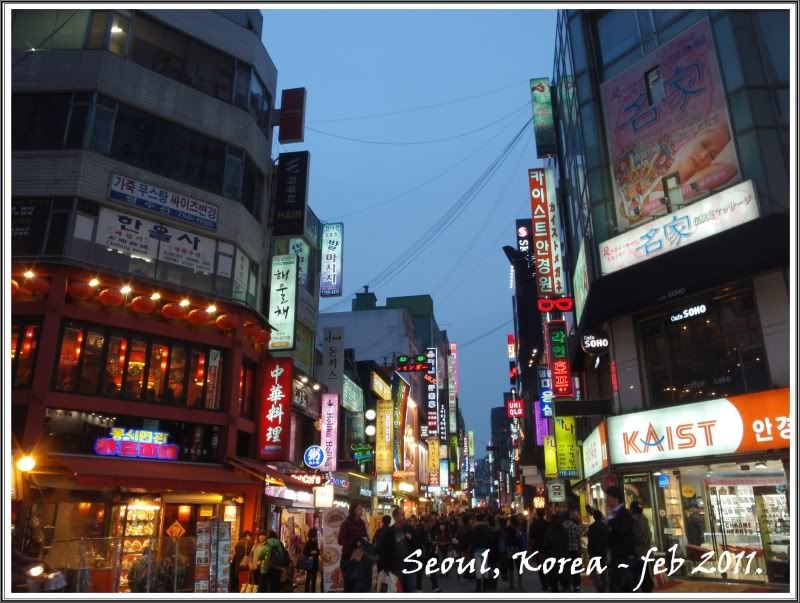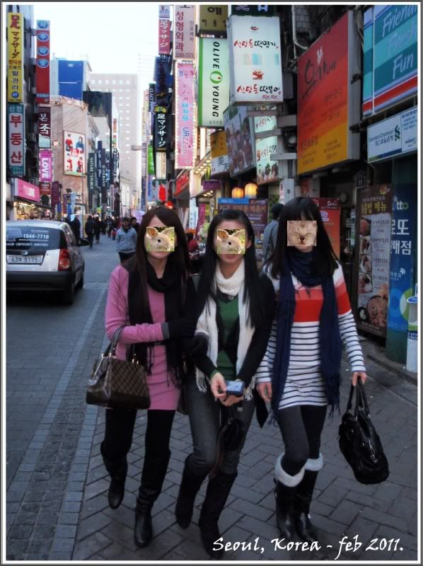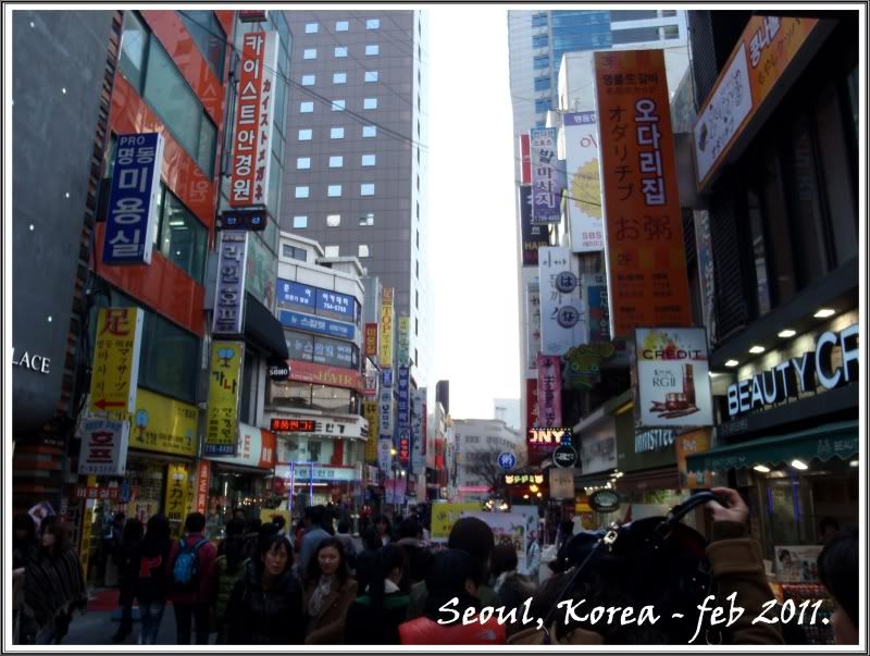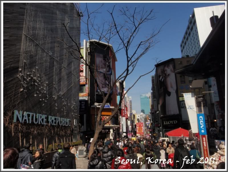 昨天在滑雪場玩了一整天, 大家都累壞了.. 依舊在當地時間早上11點集合..我們便向明洞出發.