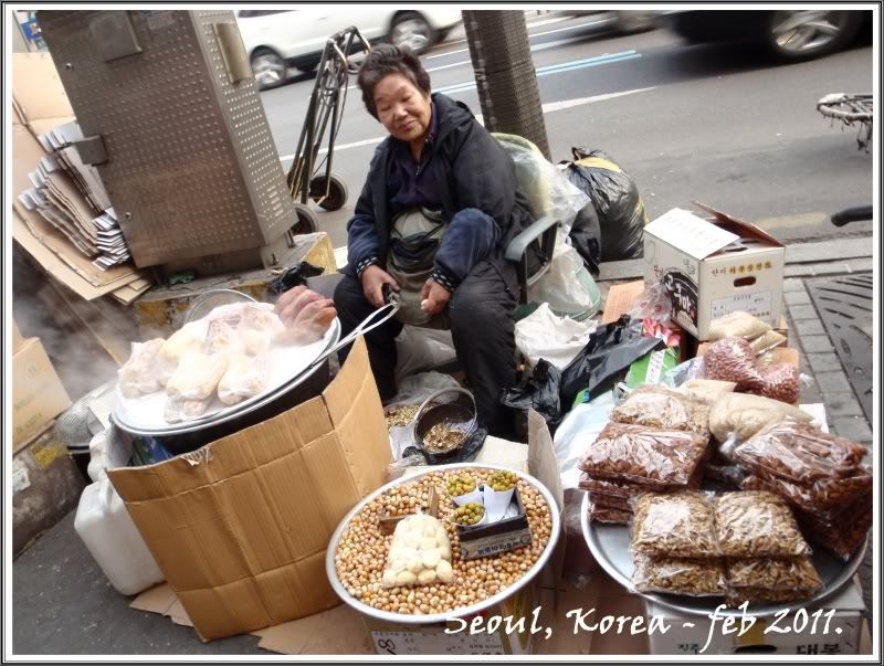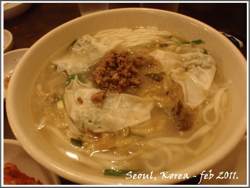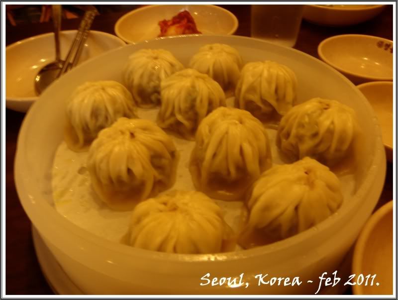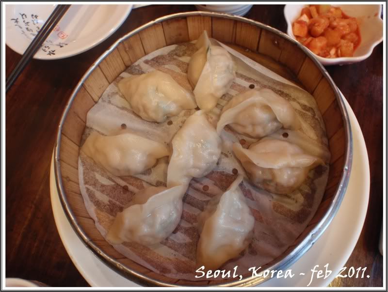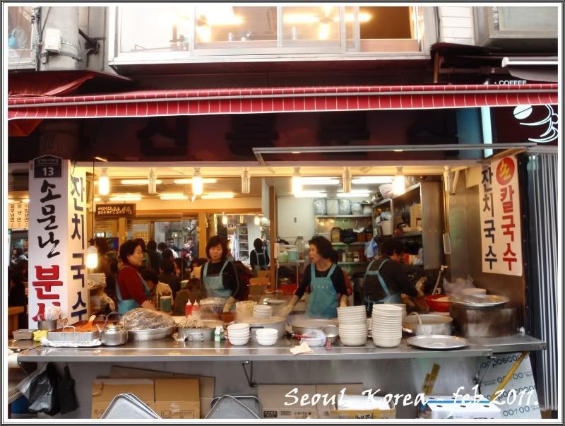 大老虎怕我們餓到也不吃, 只顧著買, 先帶我們去吃明洞餃子..