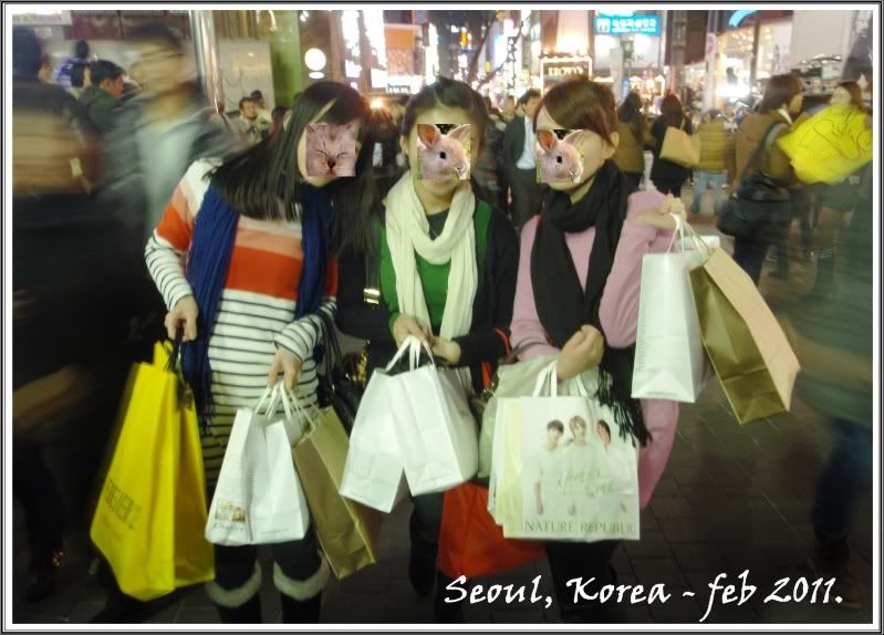 現在, 我們已經沒有了任何的顧慮, 可以在明洞盡情地購物了..