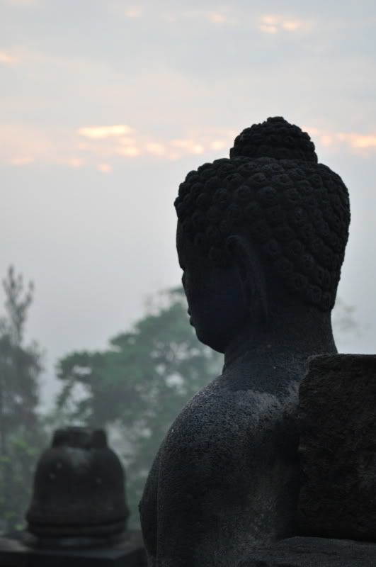 Borobudur婆罗浮屠最高三层要等到11月才开放!!!!!夕陽沒看到,日出有看到.我六點進去時太陽才慢慢的要出來,還被山擋到,所以現在去的話不要花錢參加日出團.要不然真的虧大了
