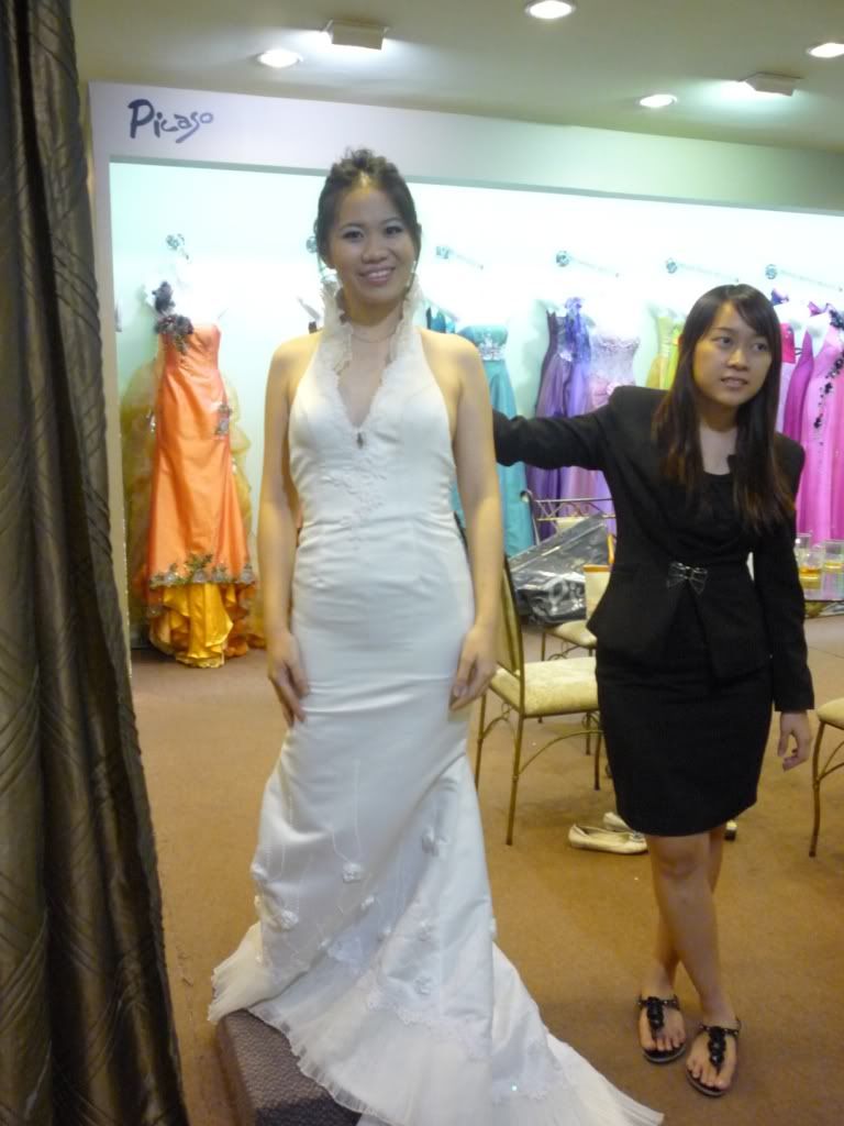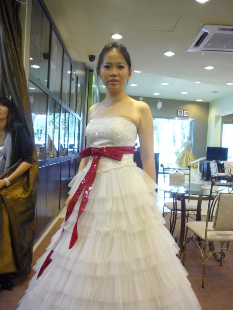 我也蛮喜欢公主式的那件,但是我喜欢红红的 ribbon ,有喜气的感觉。。。