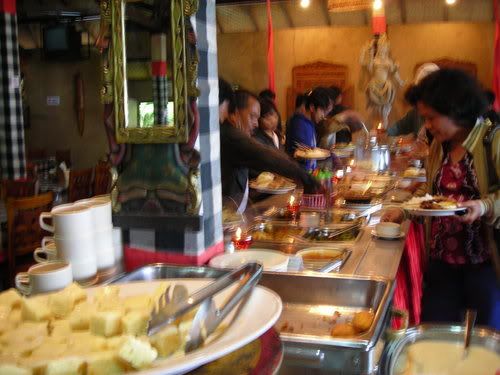 地点大概在seminyak 附近吧。。因为当时,我们从 tanah lot 去 kuta,途中 太塞车,司机有转去 seminyak 想到穿小路的。。可惜,一样塞车。。 你不妨拍下照片,问看那里有的吃。。 不然,就是问会同一个司机 -- 我是galung 的下属 - penjoh 带领的~  |