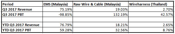 Trading of Wire Harness Product - 主要贩卖配装电路产品,该业务目前只占了总营业额的0.3%左右。