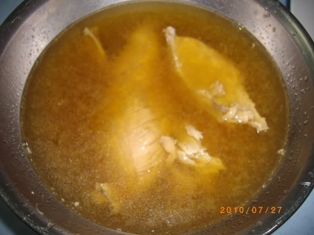 1. 清水加入魚胶粉,搅拌均匀後,隔水加热融化,待冷却后备用。