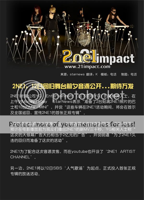 Meanwhile, 2NE1 (comprised of Sandara Park, Park Bom, CL, Gong Minji), will be releasing their first full length album on the 9th, with a total of 12 tracks.