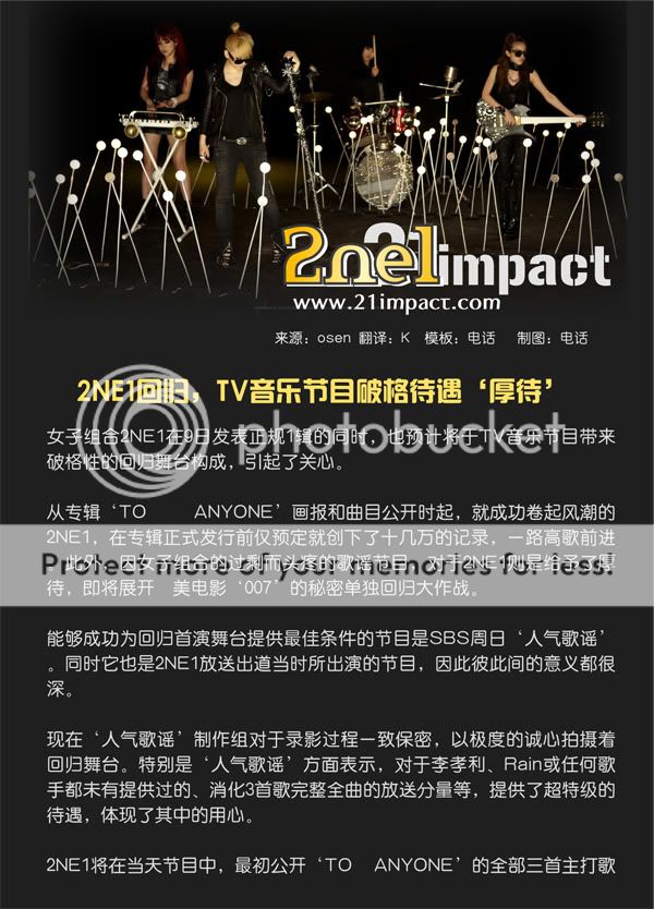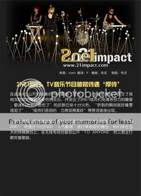 Meanwhile, 2NE1 will make their comeback through SBS Inkigayo on the 12th. They will release their first full-length album ‘To Anyone’ not only in Korea but abroad through Apple iTunes on the 9th.