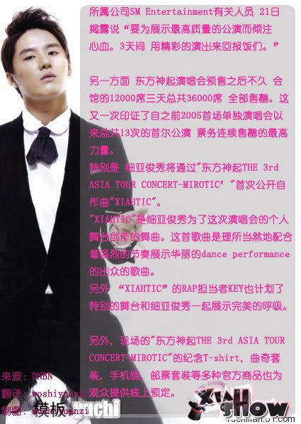 东方神起在21日下午在位于首尔的奥林匹克公园体操竞技场举办了‘东方神起THE 3rd ASIA TOUR CONCERT-MIROTIC’演唱会。在20日已经举办了首场,到22日为止将会进行3场公演。