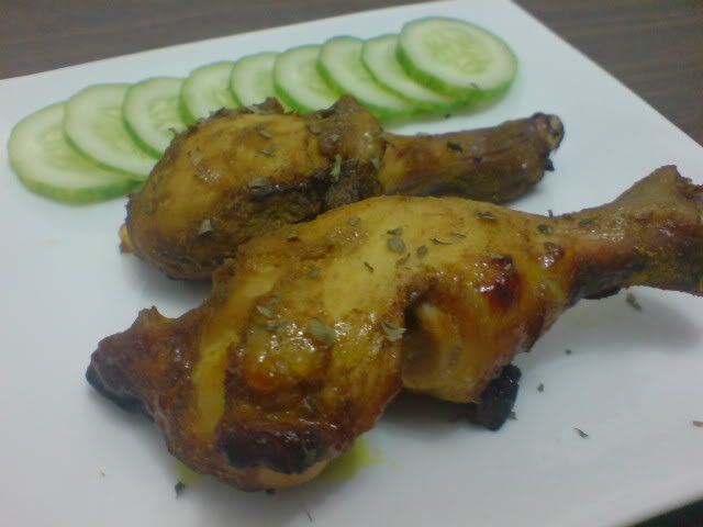 我昨晚也烤了两只鸡腿,不过两只都一样大...... |