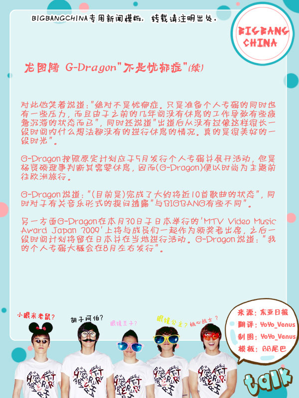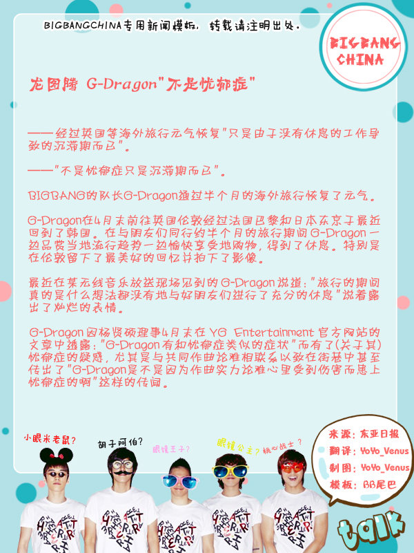 龙图腾 G-Dragon“不是忧郁症”