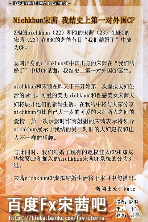 Nichkhun宋茜被海外歌迷称为"太极夫妇" 还有另外一个名是Vinnie 毛毛虫的妹妹 发表于 3-6-2010 09:25 PM