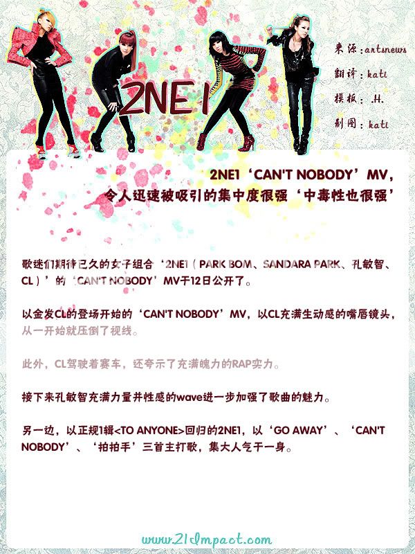 2NE1's music video for 'Can't Nobody' was planned to be released today (the 11th) at 10AM however due to problems with production, we are letting you know that the release date has been changed in emergency to the 12th at 10AM.