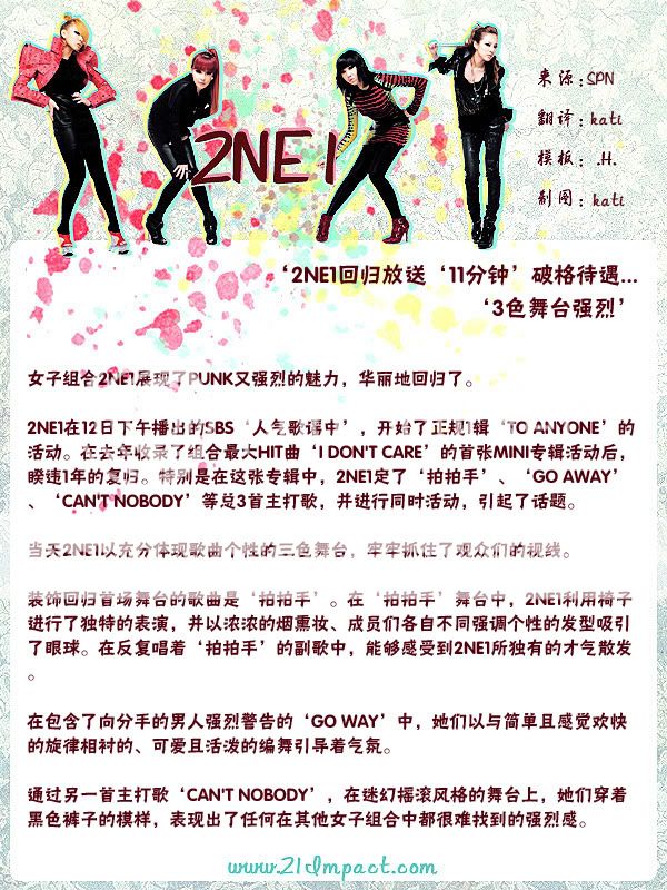 Tomorrow at 10AM, 2NE1's 'Can't Nobody' Music Video will be released, and it will also be their first comeback performance on SBS Inkigayo.