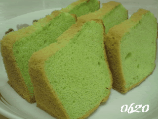 这款戚风蛋糕是用新鲜的pandan汁来做