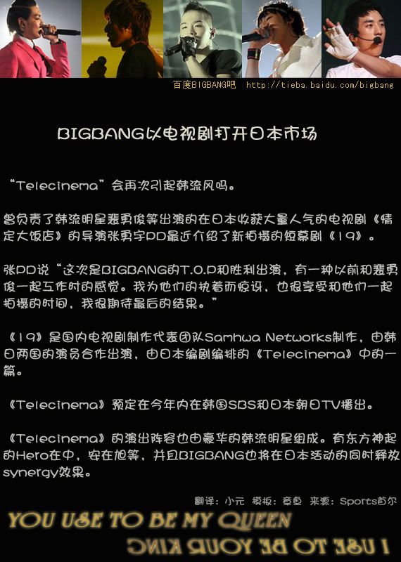 According to director Jang, both T.O.P and Seung-ri worked on songs that may be featured in the forthcoming telefilm.