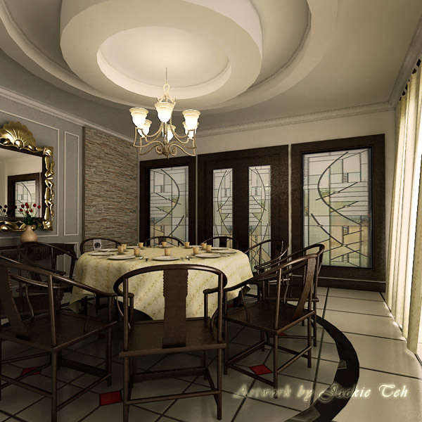 原帖由 jackieteh 于 21-12-2008 01:12 AM 发表 这个是最近画好的古典饭厅。 欢迎大家的意见与批评。 谢谢。