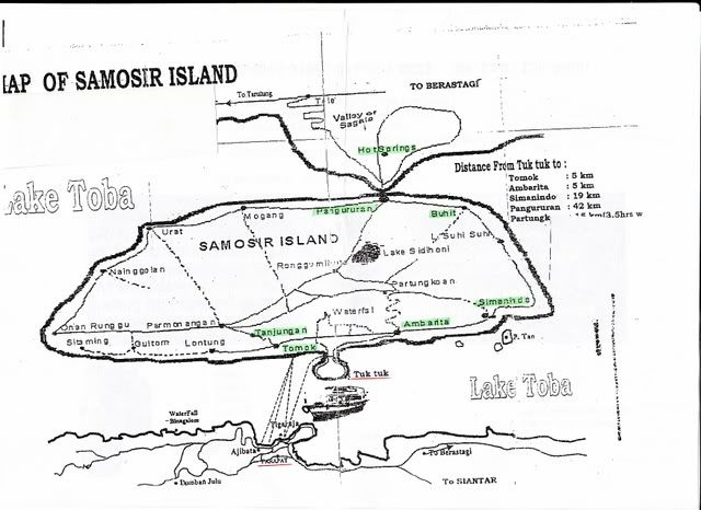他給了中肯的意見, 乘坐另外的渡輪到 Pulau Samosir 的 Tomok