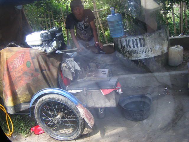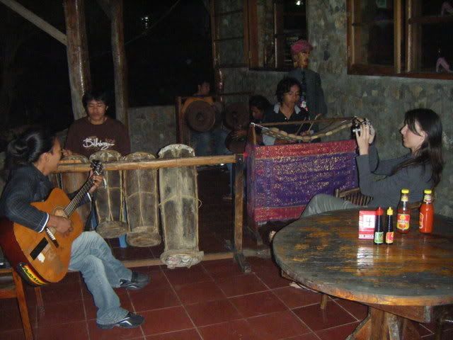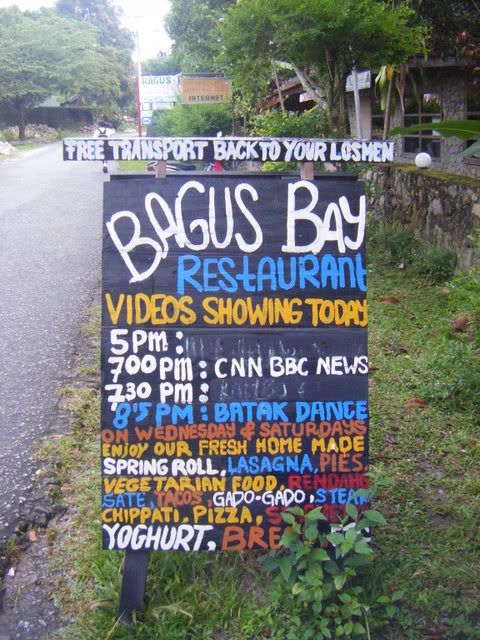 兩人不約而同向聲音中看去, 只見一人正向 Bagus Bay 的老板詢問 Berastagi 的路程 ..
