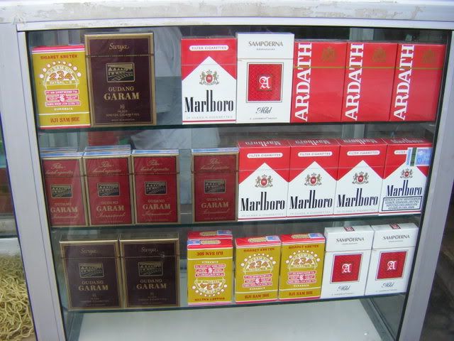 除了入口的外國品牌香煙, 其他的是印尼本國生產的, 有的是香料口味, 略帶甜味 ..