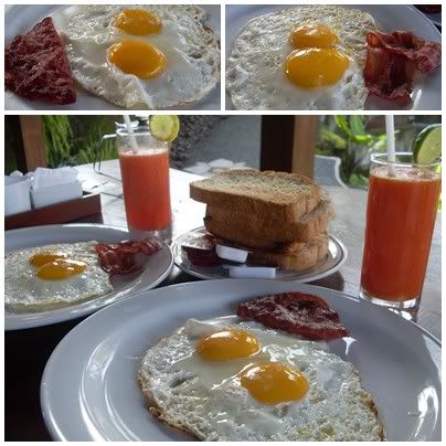 原本计划6.30起床然后到Kuta Beach 走走,拍拍照。怎知上一下厕所顺便看下时间,吓我一大跳!!时间写着0755am。。顿时乱掉,因为Galung 8.30am 就来载我们。头脑还来不及清醒,只知道我们要在这半个钟梳洗,收拾行李和吃早餐。还不错,因为我们在8.45amcheckout了。马上见到Galung,很亲切的样子来接待我们。今天第一个地点,我们先到Kuta Beach 拍照。