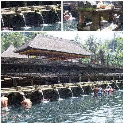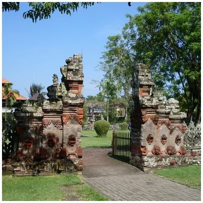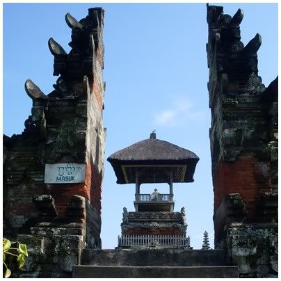 TirtaEmpul的由来真的很长,本来不想写出来可是不写的话以后自己也会忘记。最后还是决定写出来和大家分享吧。很久以前, Bali王国被一个叫Mayadanawa的国王统治。他是一个独裁者,它不允许他的人民拜神,而且毁掉全部庙。他要让全部人民把它当作神一样看待,然而他自己却偷偷拜神,要求神只保佑他一个。人民都相信这个国王是不能被任何东西伤害,所以也只好把它当作神看待。也因为这样,神就派了一位圣人叫Indra,它配有一副弓箭,也只有这一副弓箭可以杀死国王。当时他还是一个小孩,任命都保护着他直到他成年。Indra成年后,带了他的战士追杀国王。然而,国王也知道他将面临危机。当他逃到这个地方时,已经无路可逃。这个狠毒的国王被Indra的箭射中,死之前他下了咒语他的血将流遍整个Bali岛,将所有的人毒死而且Bali将变成一个不毛之地。眼看着Indra的战士一个个死去,Indra就牺牲自己把他埋在这个地方以解除国王的咒语。他说,在这个地方涌出来的水是圣水,从今以后,如果人民有衰运将可以用这些圣水洗掉他们身上的霉运。奇怪的是,被水流过的那些死去战士竟然复活了。人民也开始在这里建立起这个圣泉庙,相信这圣水可以洗掉身上的衰运和不好的东西。更奇怪的是,从圣泉流出来的水竟然是没有细菌而且可以安全使用。圣泉大门