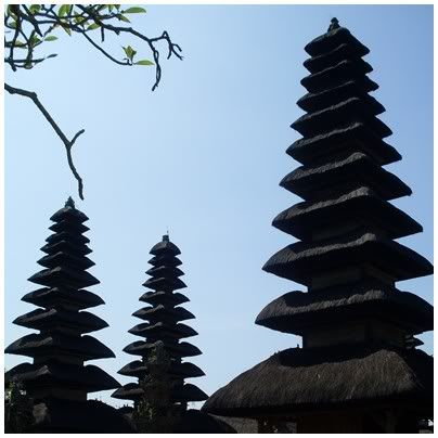 原来Taman Ayun 是以前王室膜拜的庙,现在我们只可以在围墙外拍照。每一座庙的高度不同,它们代表每一座高山上的庙。最高那个有十一层,代表 Mount Agung, Bali岛上最高的山。来看照片吧。