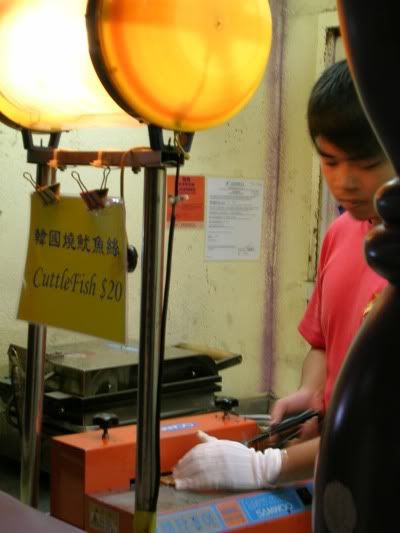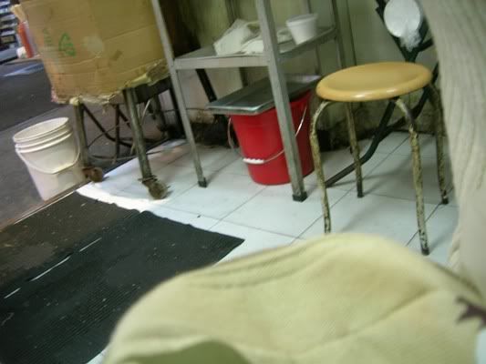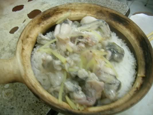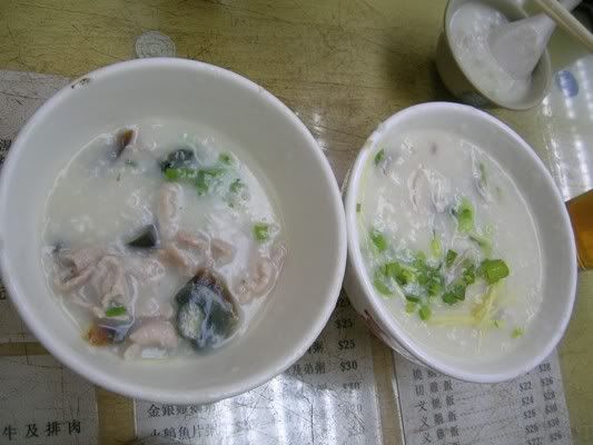 他们有一个大锅煮着粥,里面的粥要卖完了就把红桶的粥倒进去refill... 偶尔也加猪骨进去...