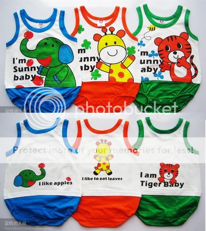 非常可爱的造型衣,裁剪得体,适合儿童体型,缝制精巧,易折叠,纯棉质地,具有极佳的伸缩性,尺寸标准不变型,手感柔软,透气,吸汗,令宝宝穿着倍感舒适,更加的活泼可爱,时刻让宝宝成为众目关注的焦点.赢得百分百的回头率哟