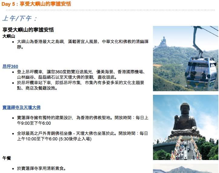 。机场-->昂坪360缆车-->昂坪市集-->天坛大佛-->宝莲禅寺-->香港宝鼎 -->心經簡林-->东荟城名店仓-->金涛酒店