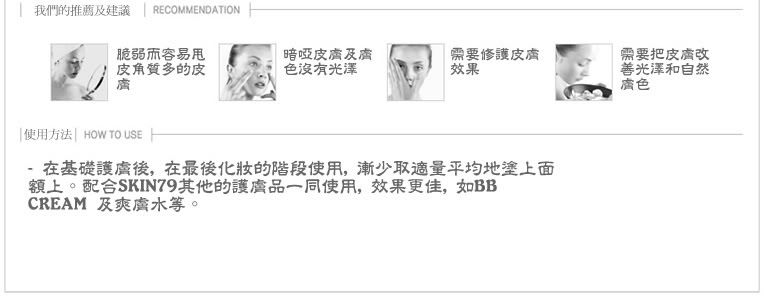 喜欢自然有光泽,裸妆效果好的朋友请选择SKIN79
