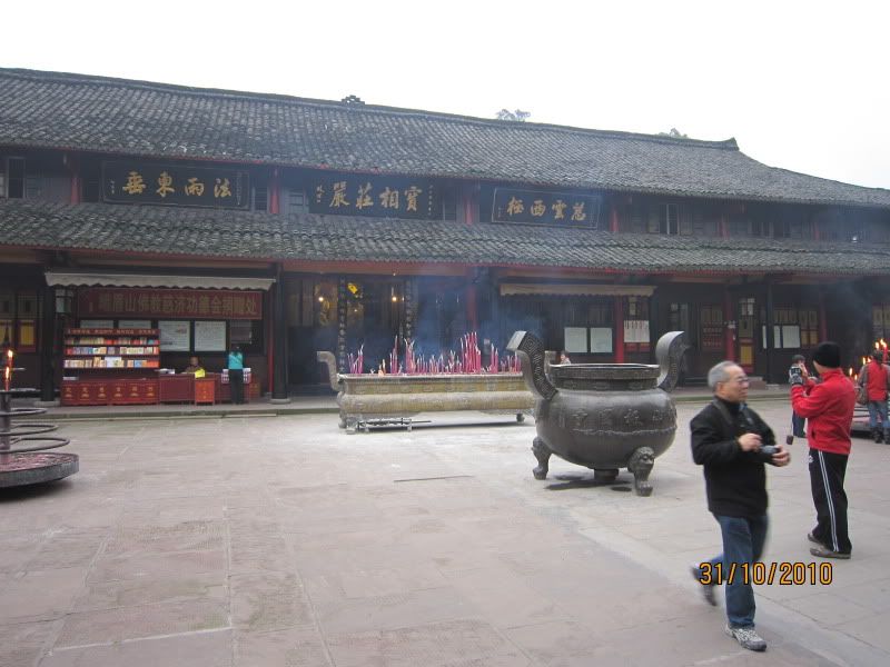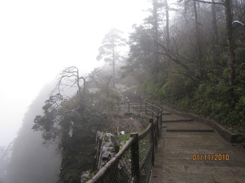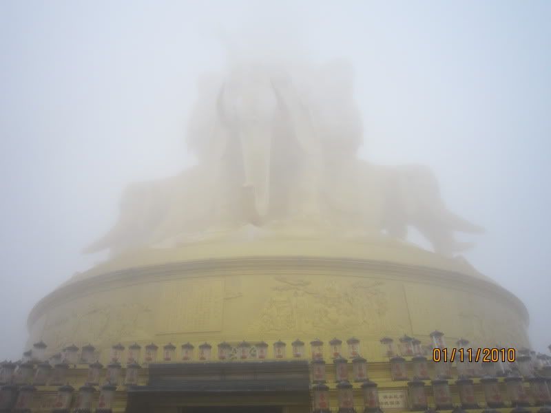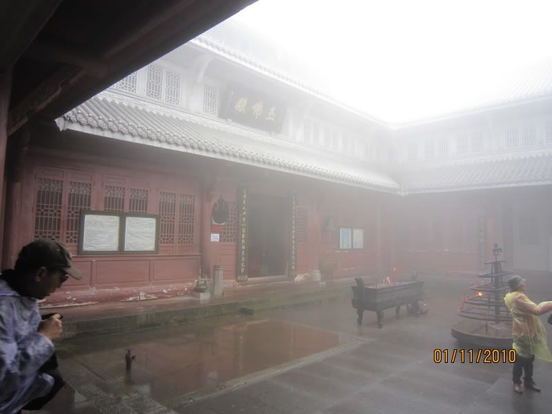终于到达峨眉山了~可是运气不好!天公不作美!下起了雨,又多雾。。。看不清楚!而且很冷啊。。。(据说有零下5-6°度) [img=800,600] [/img]