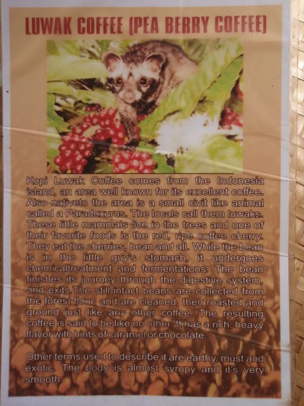 Coffee Farm, luwak coffee - Bedugul - Pizza Bagus - Goa Gajah - Venesia Spa - Bebek Bengil, smoky duck