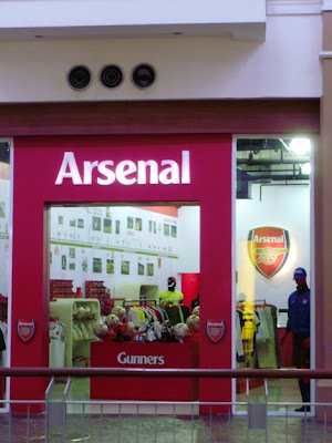 然后再逛逛外面的商店。。。发觉了这个~~~ 老公的最爱 ARSENAL 专卖店。这可是在马来西亚没有的哦。。。这里卖的衣服都是 ARSENAL brand 的,而不是 NIKE。老公看到这个就很兴奋。。。哈哈。。。