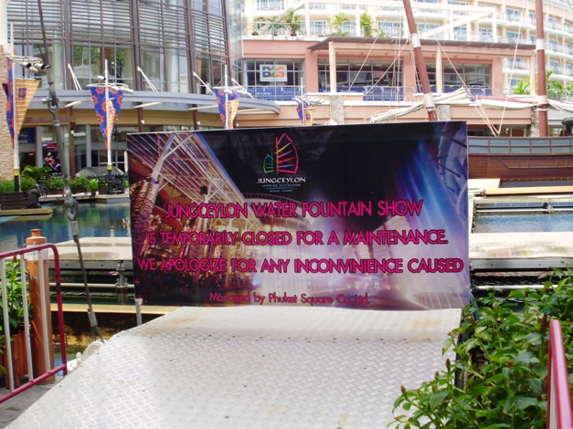 Jungceylon 外面的喷泉表演因为进行维修的关系而暂时停止操作。
