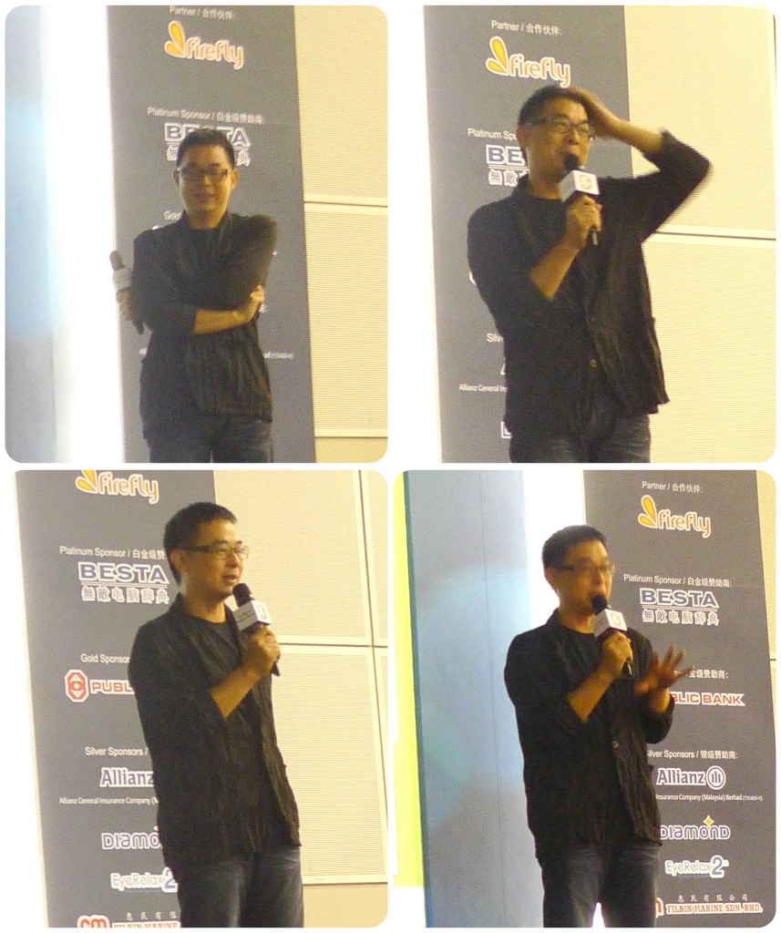 待他情绪平稳后,向大家解释平时的他不是这样的,就这样带着起伏的情绪向书迷们自我介绍兼作开场白。当中,情绪还未完全平稳的他把大马说成新加坡后,又是一阵哗然,知道自己说错了后又懊恼的不知所措的,让我感觉眼前的几米好真实且真诚的努力在表达着自己的想法,我喜欢画着的几米,亦喜欢说话的几米。