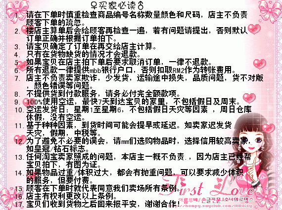 ♀请各位宝贝根据以下的表格下单哦!清单可Email或留言在贴不接受PM,谢谢合作♂