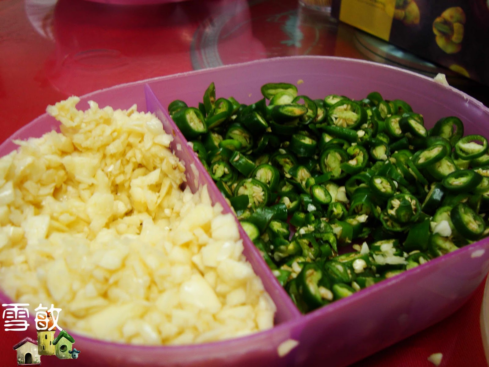 等食物的时候, 就端上一大堆的蒜米和小辣椒~~ 不用一直跟店员讨,不错的构思~~