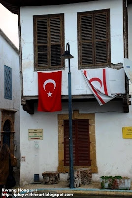 原来,在塞浦路斯独立前,Greek Cypriot希望能回归希腊,Turkish Cypriot希望能分开独立。后来两派把各自退让,从英国手上获得独立。独立不久后两派再起争执,后来就产生冲突导致今日的局面。我一直纳闷为什么在尼科西亚能看到单独的希腊的国旗,却看不见少了希腊国旗陪伴在侧的塞浦路斯国旗。Marios告诉我,塞浦路斯的国歌也是跟希腊一样。而因为政治上的对立,一些少数族群例如阿美尼亚人,被逼从Greek Cypriot或Turkish Cypriot中选择其一。这些分而治之的手法,和族群间的不容,很容易让我跟自己的文化背景联想到一块。绿线的南面是联合国承认的塞浦路斯共和国,他们认为绿线是暂时性的,绿线的海关和移民厅自然也是暂时的。但是在北部的就把边界当作是永久性的来看待。